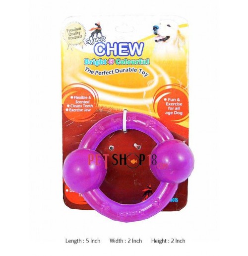 Transparent rubber ring with two balls violet is chew ring keeps your dog's interest, while helping to enhance health of teeth and gums.This toy is perfect for chewing or playing. Enhance the dental health of your dog while providing an interesting and appropriate chew object.